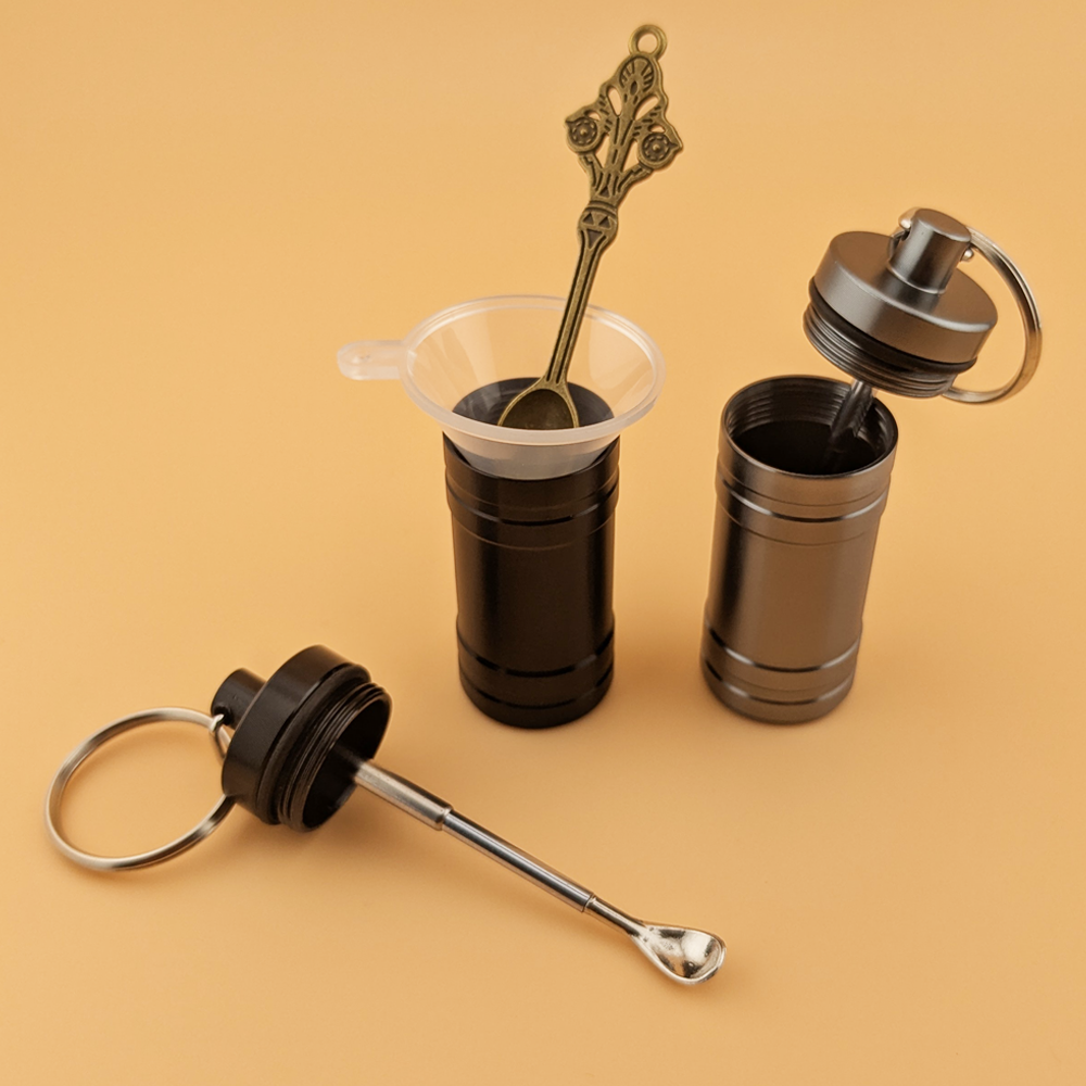 - The attached keychain and spoon make the containers more convenient to carry as spice shakers during travel and outdoor camping. The refillable spice kit has small spoon and funnel as an extra bonus.